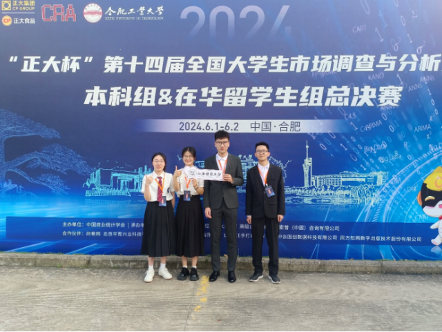 6月1至2日,由中国商业统计学会主办的“正大杯”第十四届全国大学生市场调查与分析大赛本科组总决赛在合肥工业大学举行。中国科学院院士、北京大学数学科学学院讲席教授陈松蹊,中国高等教育学会副会长、教育部高等教育司原司长张大良,教育部高等学校统计学类专业教学指导委员会主任委员、北京大学教授房祥忠,安徽省教育厅副厅长储常连,中国商业统计学会会长、全国大学生市场调查与分析大赛组委会主任、中国人民大学教授金勇进,正大集团安徽省区副总裁方劲松等领导嘉宾莅临出席开幕式。我校本科生2支队伍获得全国一等奖,2支队伍获得全国二等奖。同时,我校荣获最佳院校组织奖、最佳赛区组织奖。